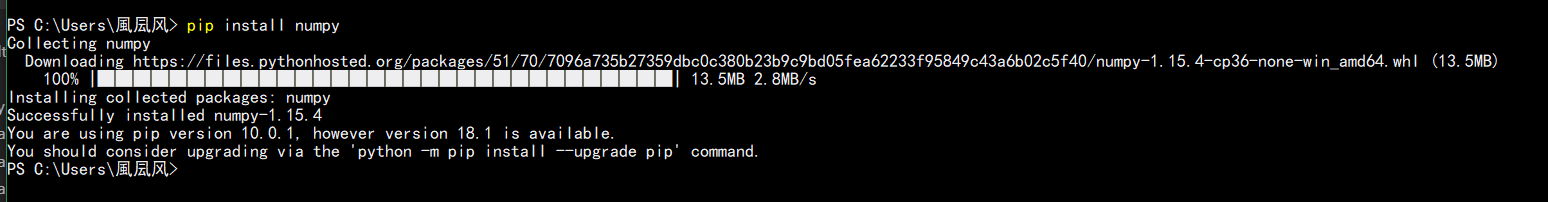 开始下载安装 numpy 库
