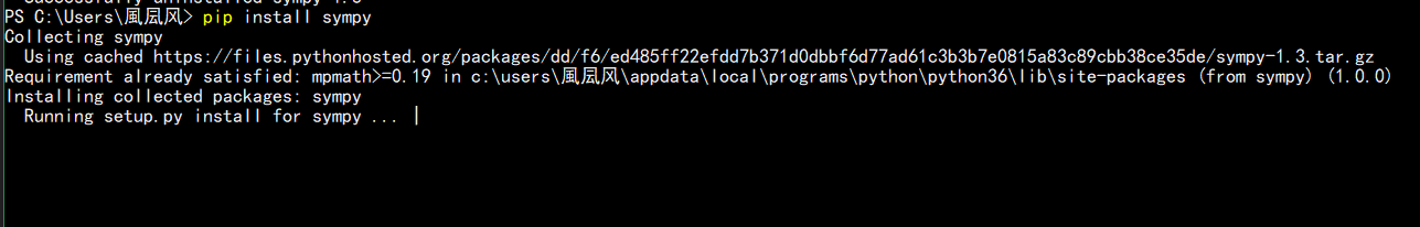 输入上述 pip install 命令,开始下载和安装 sympy